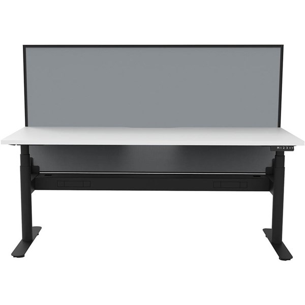 RAPIDLINE HALO PLUS SINGLE SIDED WORKSTATION WITH SCREEN AND CABLE TRAY 1800MM NATURAL WHITE TOP / BLACK FRAME / GREY SCREEN