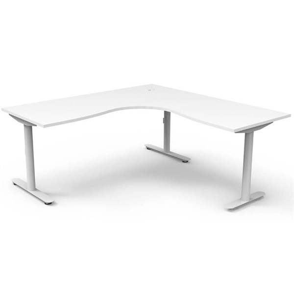 The Halo Static Corner Workstation offers a spacious and efficient workspace solution - The workstation features a robust frame with a 70mm diameter column and adjustable levelling feet, ensuring stability and ease of setup