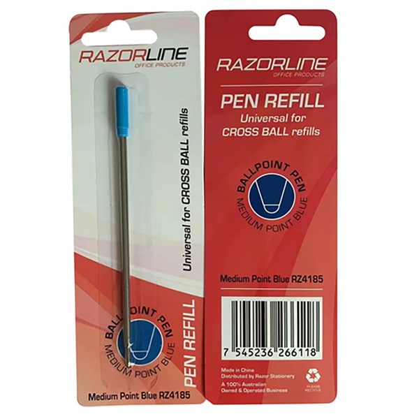 The Razorline refill RZ4180 provides a medium-point M/Blue ink line suitable for smooth, consistent everyday writing