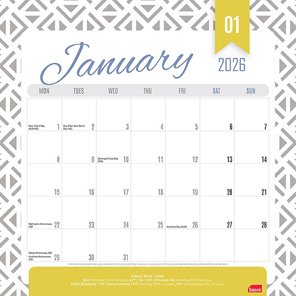 SASCO 2026 MAGNETIC WALL CALENDAR 325 X 315MM ASSORTED