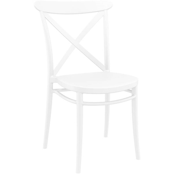 Cross stacking chair is produced with a single injection of polypropylene reinforced with glass fibre obtained by means of the latest generation of air moulding technology with neutral tones