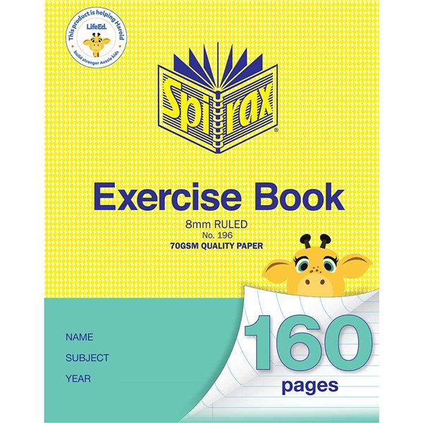 SPIRAX 196 EXERCISE BOOK 8MM 160 PAGES 225 X 175MM