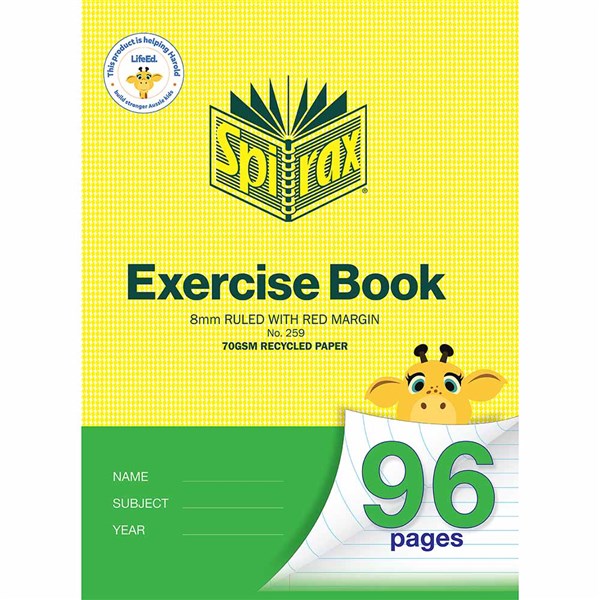 SPIRAX 259 RECYCLE EXERCISE BOOK A4 8MM 96 PAGES