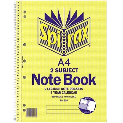 SPIRAX 56605 605 SPIRAL NOTEBOOK SIDE OPENING A4 2 SUBJECT 250 PAGE