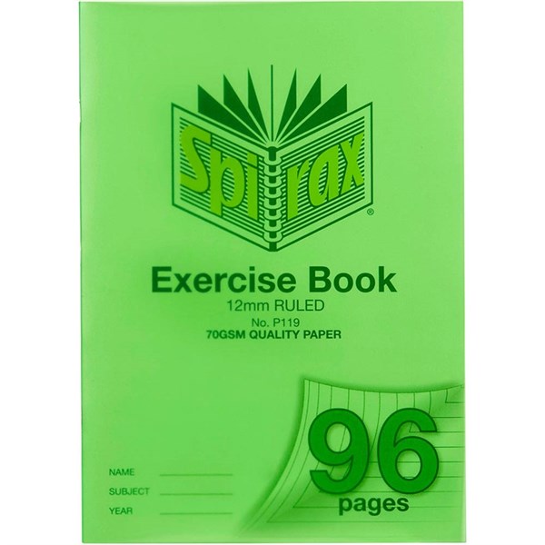 SPIRAX P119 EXERCISE BOOK 12MM RULED 70GSM 96 PAGE A4 GREEN