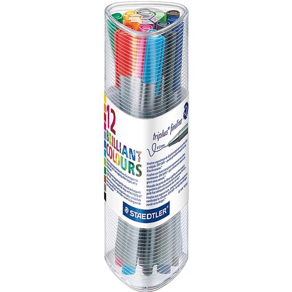 • Triangular pen case containing 12 triplus fineliner in assorted colours