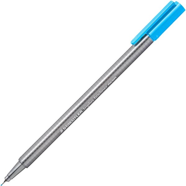 STAEDTLER 334 TRIPLUS FINELINE PEN NEON BLUE BOX 10