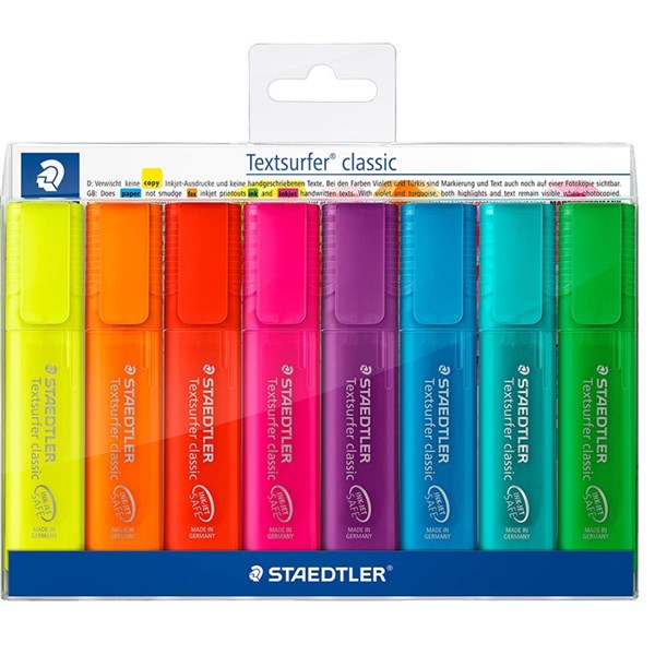STAEDTLER 364 TEXTSURFER CLASSIC HIGHLIGHTER CHISEL ASSORTED PACK 8