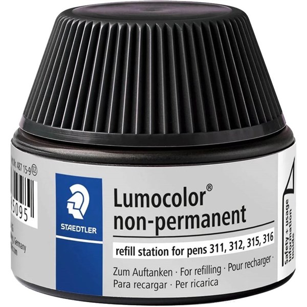 STAEDTLER 487-15 LUMOCOLOR NON-PERMANENT REFILL STATION 15ML BLACK