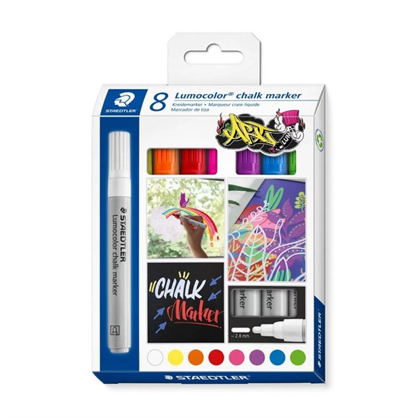 STAEDTLER LUMOCOLOUR 344 CHALK MARKER 2.4MM ASSORTED PACK 8