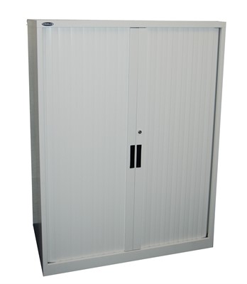 STEELCO TAMBOUR DOOR CABINET 3 SHELVES 1320H X 900W X 463D MM WHITE SATIN