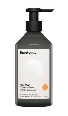 Blending citrus and aromatic fragrance families, Thankyou Botanical Sweet Orange & Almond Hand Wash is as delightful as it is effective. We've sourced quality ingredients that clean, protect and nourish your skin whilst also being gentle on our planet. The refillable pump bottle is not only kerbside recyclable but is also made using 98% recycled material. Try our refill system and Forever Bottles to reduce plastic even further.