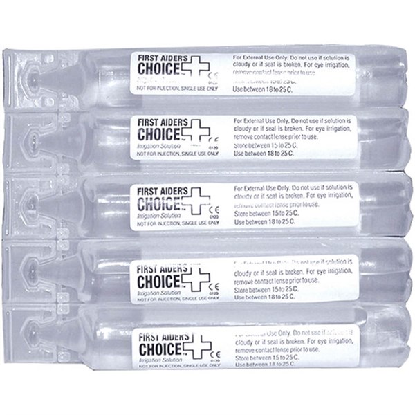 The First aiders choice saline solution is handy to have around the home or the workplace, they can be used in case of an accident or emergency to clean the eyeball and prevent further damage or infection -  Ideal for locations where mains tap water is not readily available for eye irrigation