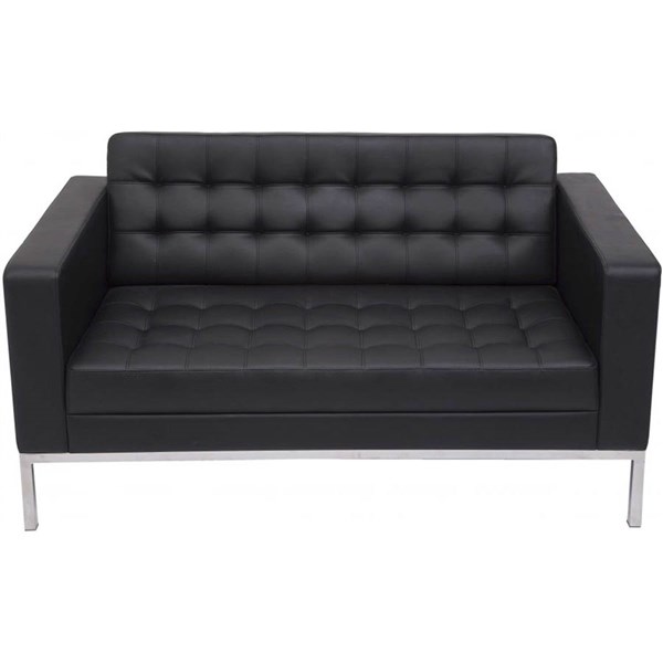 • Elegant reception area two seat arm chair with button finish to black PU, easy clean upholstery