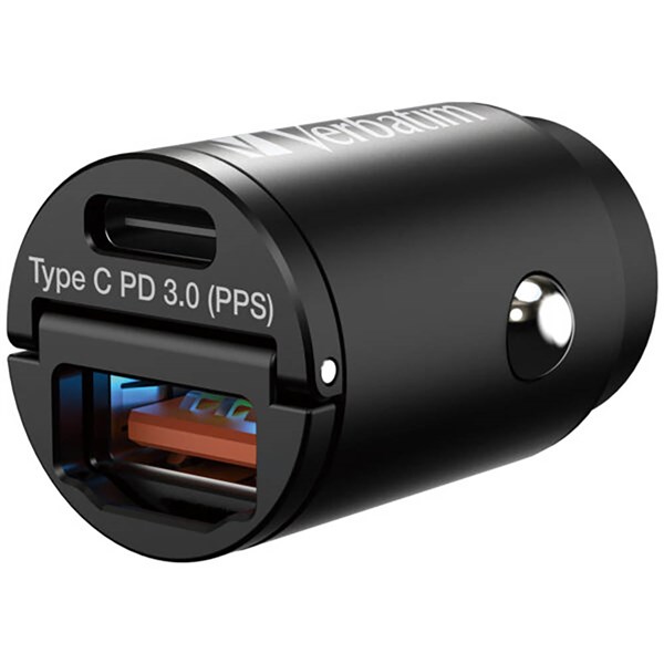 The Verbatim Mini Car Charger 2 Ports 30W Black (66681) is a compact dual-port charger designed for charging smartphones, tablets, and other USB-powered devices on the go