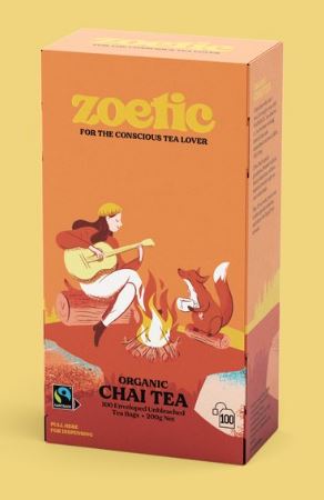 ZOETIC ORGANIC CHAI TEA ENVELOPED PACK 100