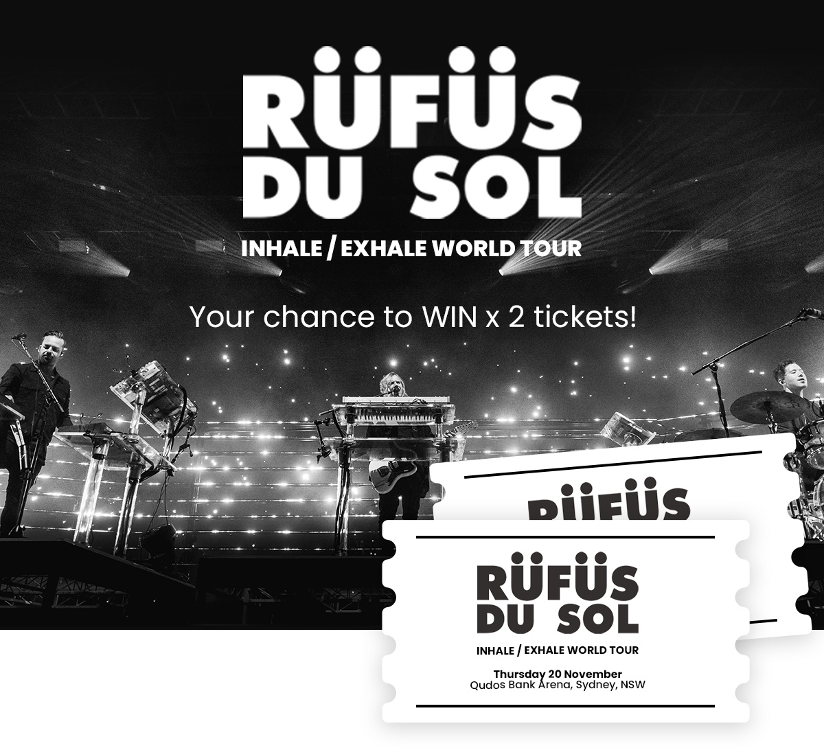 TERMS & CONDITIONS: Free Rufus Du Sol Inhale/Exhale Tour tickets x 2 promotion starts Wednesday 1st October 2025 and competition ends Friday 31st October at 5pm and winner drawn after 5pm. You must spend a minimum of $200 in one transaction. The promoter sets the ticket terms and conditions for this event.