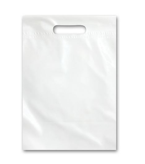 WHITE LDPE CARRY BAG WITH DIECUT HANDLE 406MM X 508MM 50UM PACK 100