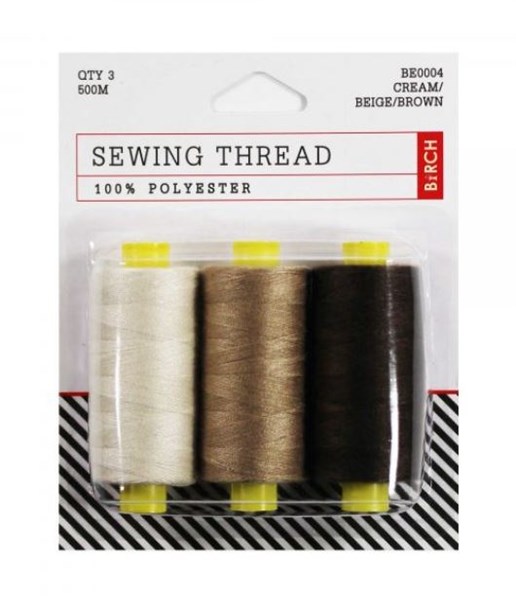 • Pack contains 3 x 500mt reels (1 each of cream, beige, brown)