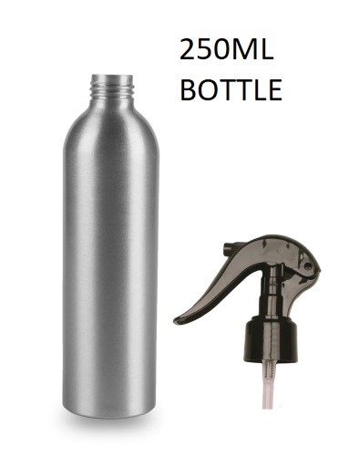 ALUMINIUM BOTTLE WITH BLACK SPRAY TRIGGER - 250ML