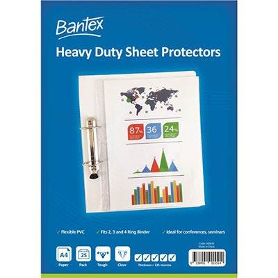 BANTEX HEAVY DUTY SHEET PROTECTORS 125 MICRON A4 CLEAR PACK 25