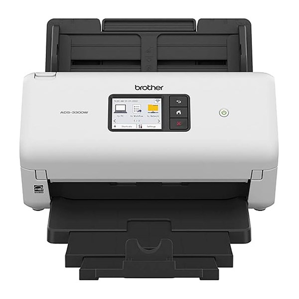 The ADS-3350W desktop document scanner combines high-functionality with a simple and compact design