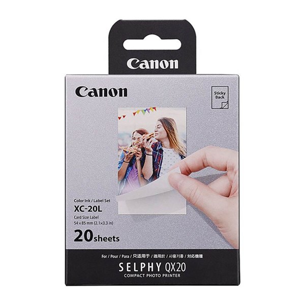 Released alongside the brand new Canon QX20 printer, this Canon XC-20L Card Size Label pack provides ink and paper for 20 beautiful sheets of sticky photo paper