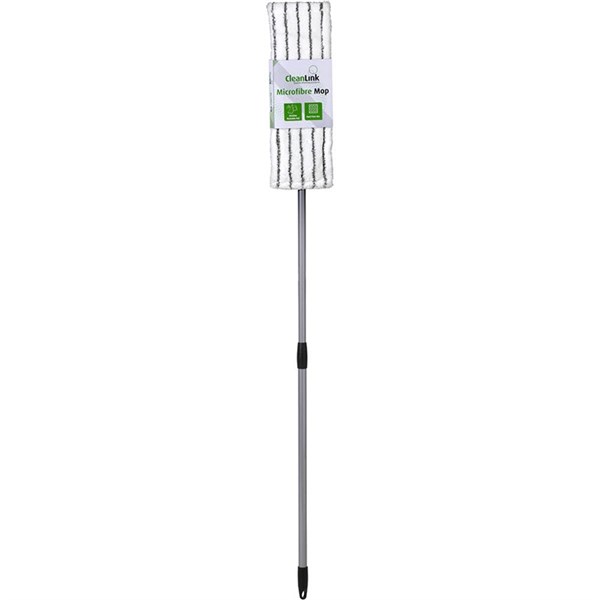 CLEANLINK MICROFIBRE FLAT MOP WITH TELESCOPIC HANDLE 1200MM WHITE/GREEN