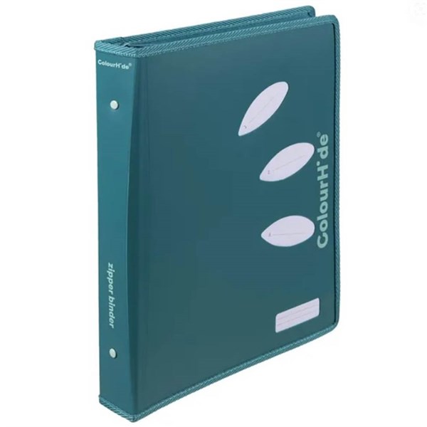 COLOURHIDE ZIPPER RING BINDER PP 2D 25MM A4 TEAL GREEN