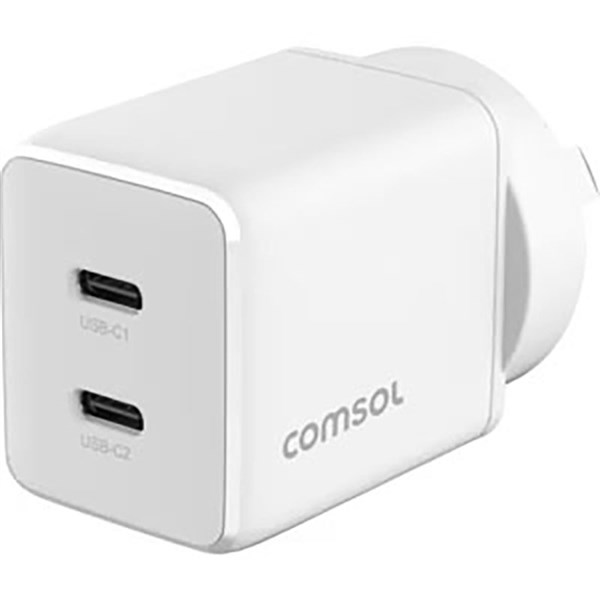 The Comsol 35W Dual Port USB-C GaN Wall Charger (AC35C2W) delivers powerful and efficient charging for multiple devices at once