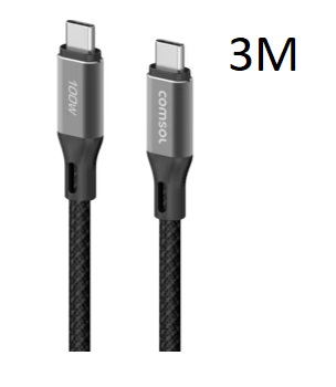 COMSOL 3M BLACK 100W USB-C TO USB-C CHARGE & SYNC CABLE