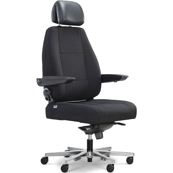 CONTROLMASTER HEAVY DUTY CHAIR ADJUSTABLE ARMS AND HEADREST BLACK FABRIC