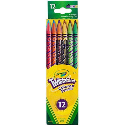 Crayola Twistable Coloured Pencils put a new spin on creativity! Just turn the ends to twist up 12 brilliant colours, See the coloured cores turn inside the clear plastic barrels