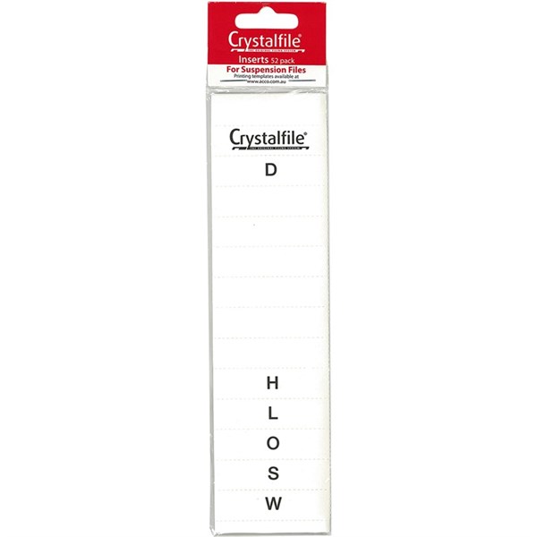 CRYSTALFILE 111540 TAB INSERTS A-Z WHITE PK50