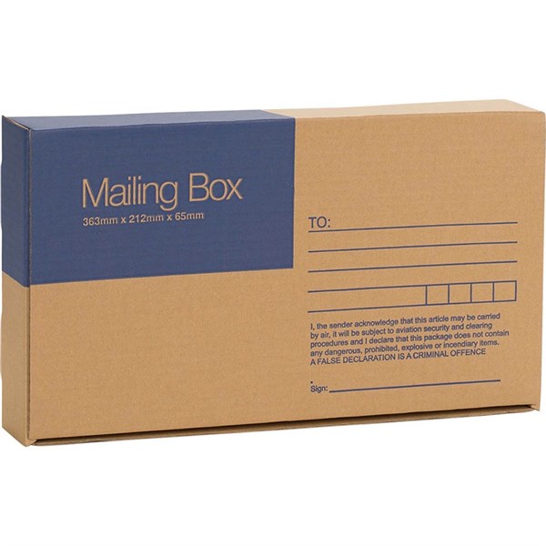 CUMBERLAND MAILING BOX PRINTED ADDRESS FIELDS 363 X 212 X 65MM BROWN