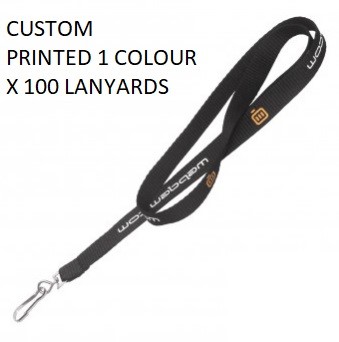 CUSTOM PRINTED 15MM LANYARD SINGLE COLOUR PRINT X 100 LANYARDS