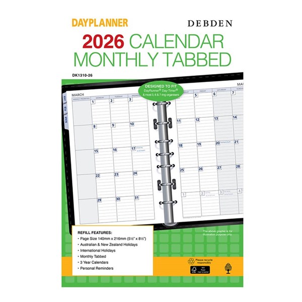 DEBDEN DK1310 DAYPLANNER REFILL TABS MONTH IN VIEW DESK SIZE