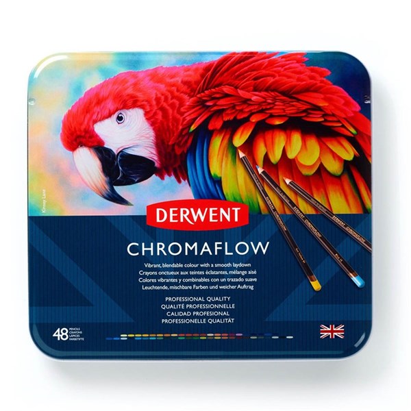 The Derwent chromaflow soft core colour pencils are highly pigmented for striking vibrancy that stands out on even dark paper