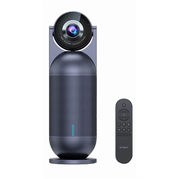 The Emeet meeting capsule is an all-in-one conference room camera for teams features a 360 degree 1080p camera, 8-mic array, 10W/90dB hi-fi speaker, and exclusive AI-powered audio and video algorithm, providing 5 video modes to create immersive meeting experiences for multiple scenarios