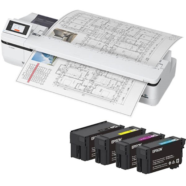 • The SC-T5160M features Epson's latest PrecisionCore print head and aqueous UltraChrome XD2 pigment ink. It will print an A1 image in as little as 31s with output that dries almost instantly to be water and rub resistant. Ink ships in a range of cartridge sizes to suit different production and cost-per-print requirements. Designed for small and medium sized businesses that want to produce wide format prints, the printer can be purchased in either a desktop or floor-standing configuration, has a very small footprint, and can be installed against a wall or in a corner. It also ships with software that enables easy printing from office and CAD/GIS applications