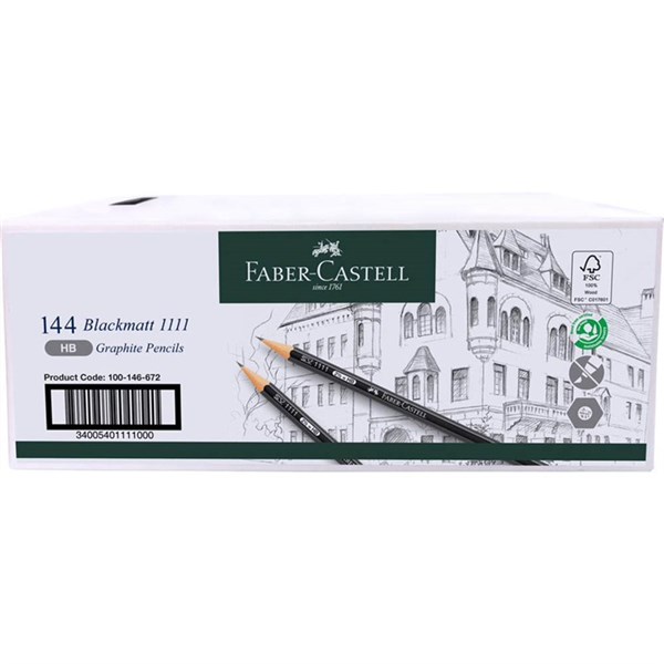 FABER-CASTELL BLACKMATT 1111 GRAPHITE PENCILS HB BOX 144
