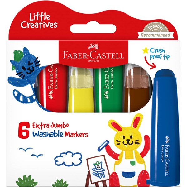 FABER-CASTELL LITTLE CREATIVES WASHABLE MARKER EXTRA JUMBO ASSORTED BOX 6