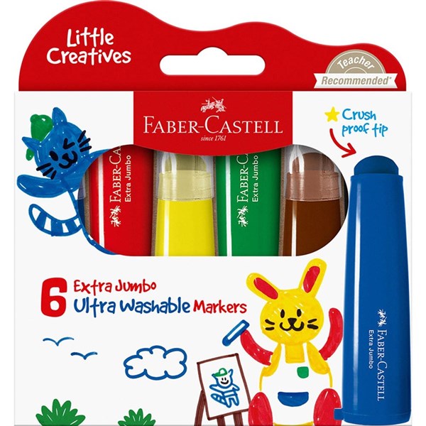 FABER-CASTELL LITTLE CREATIVES WASHABLE MARKERS EXTRA JUMBO ASSORTED PACK OF 6