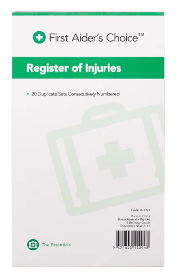 First Aiders Choice Register of Injuries comes with 20 duplicate sets so you can keep a record of any injuries that occur
