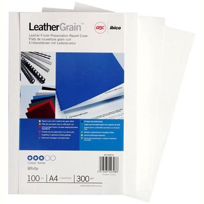 GBC IBICO BINDING COVER LEATHERGRAIN 300GSM A4 WHITE PACK 100