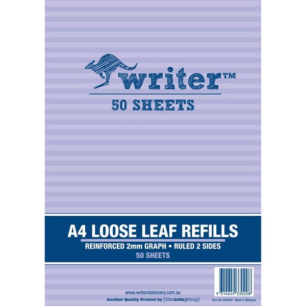 • Writer loose leaf refills can be used to refill pages in ring binders