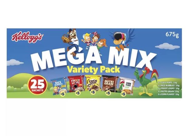 Kellogg's Mega Pack Cereal Sachets bundle your favourite cereals into one handy 25-sachet box, ideal for holidays, camping, the office or simply keeping the pantry stocked at home. Each pack includes five sachets of Froot Loops, Nutri-Grain, Rice Bubbles, Coco Pops and Corn Flakes, all in the new-look packaging.