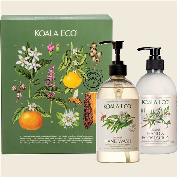 Treat yourself or someone special with the Koala Eco Gift Pack Hand Care Rosalina & Peppermint 2pk. This thoughtfully curated set includes two plant-based hand care essentials infused with soothing rosalina and refreshing peppermint essential oils. Designed to cleanse, hydrate, and protect hands, these non-toxic and biodegradable products leave skin soft, lightly scented, and nourished. Perfect for gifting or personal indulgence, this hand care duo combines luxury, natural fragrance, and eco-conscious values in a beautifully packaged set.