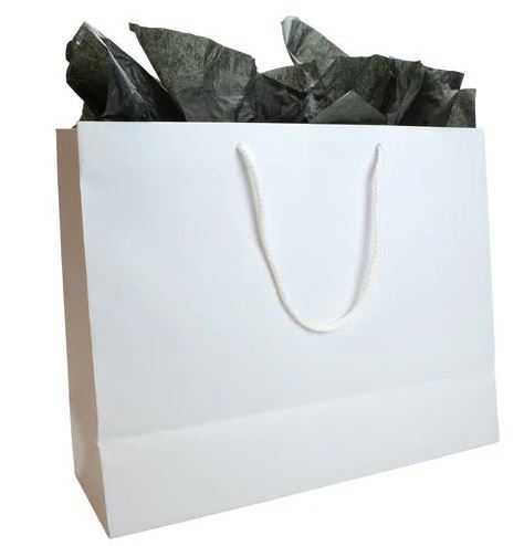 Our Large Matt White Laminated European Gift Bag is a great gift bag for larger items such as books, bulkier clothing items etc. It features a white rope handle and a gloss finish