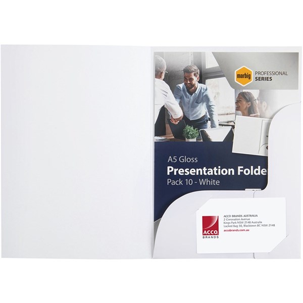MARBIG 1106108 PRESENTATION FOLDER A5 GLOSS WHITE PK10